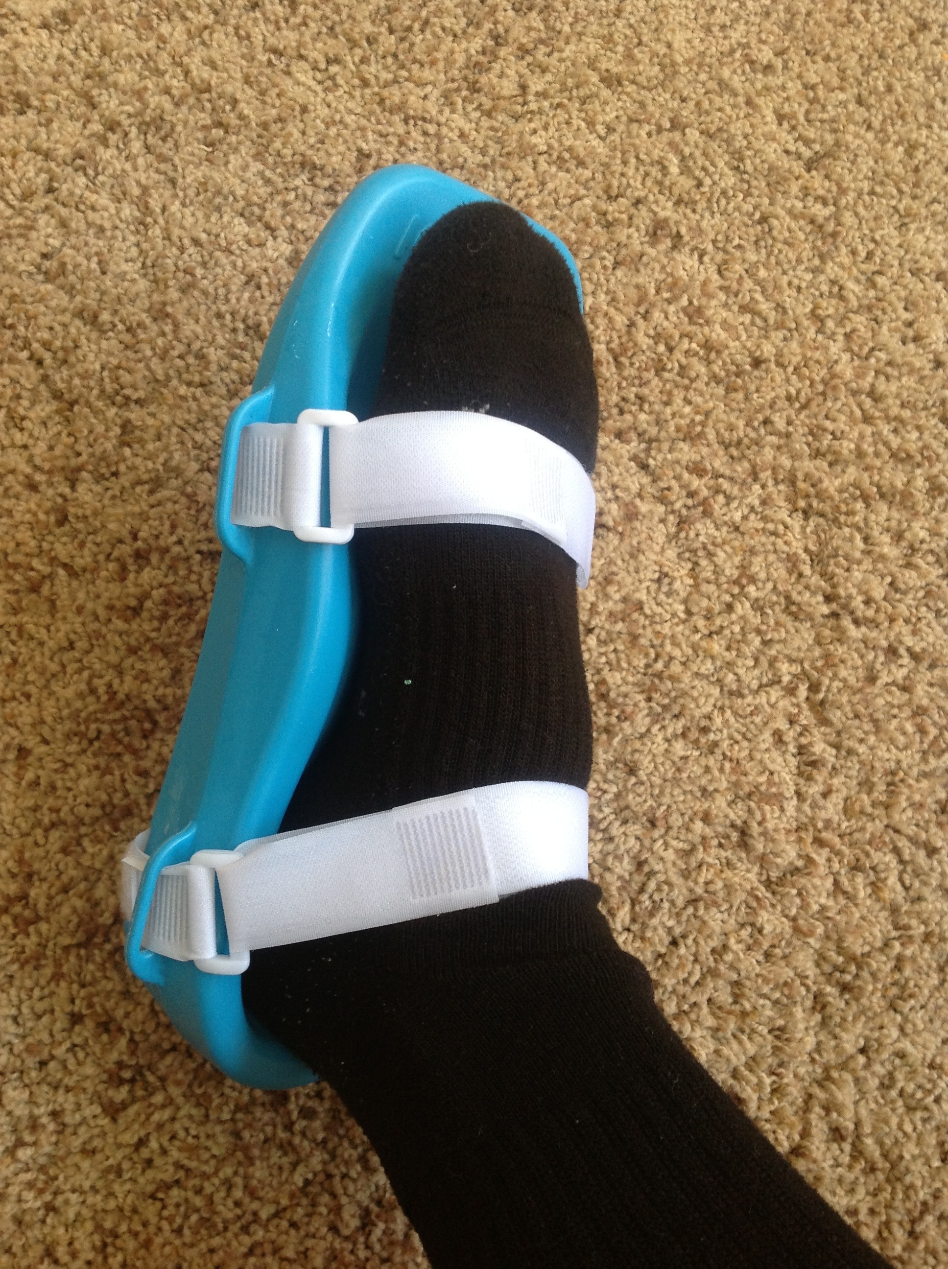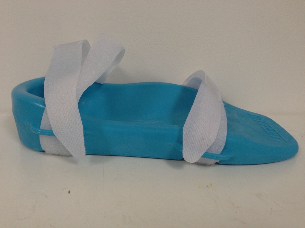 Icy Feet is a simple device that can be quickly applied and provides a cooling effect to the entire plantar aspect of the foot. It is simply a frozen plastic container similar to a freezer pack found in picnic cooler. It is contoured to fit most arches providing contact to heel and arch and midfoot. I was first introduced to this device at The Running Event where it’s designers were displaying the product. I was a bit skeptical being that ice is free and readily available to everyone. At the time I had been suffering from a mild strain of my abductor hallucis muscle from “pushing it” during a 5k race and had been icing occasionally. I was given one to try and can honestly say it is worth the cost. It is nice to quickly grab it and apply in seconds without worrying about preparing an ice bag and getting anything wet. The creators do not recommend standing on it or using without socks but I found both to be fine. It does produce some condensation which made it slippery but it was nice to be able to ice my foot while preparing breakfast and packing my lunch!